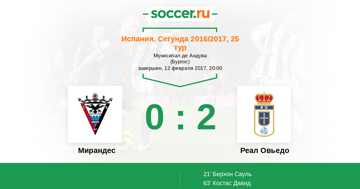 Мирандес - Реал Овьедо: обзор матча 12 февраля 2017