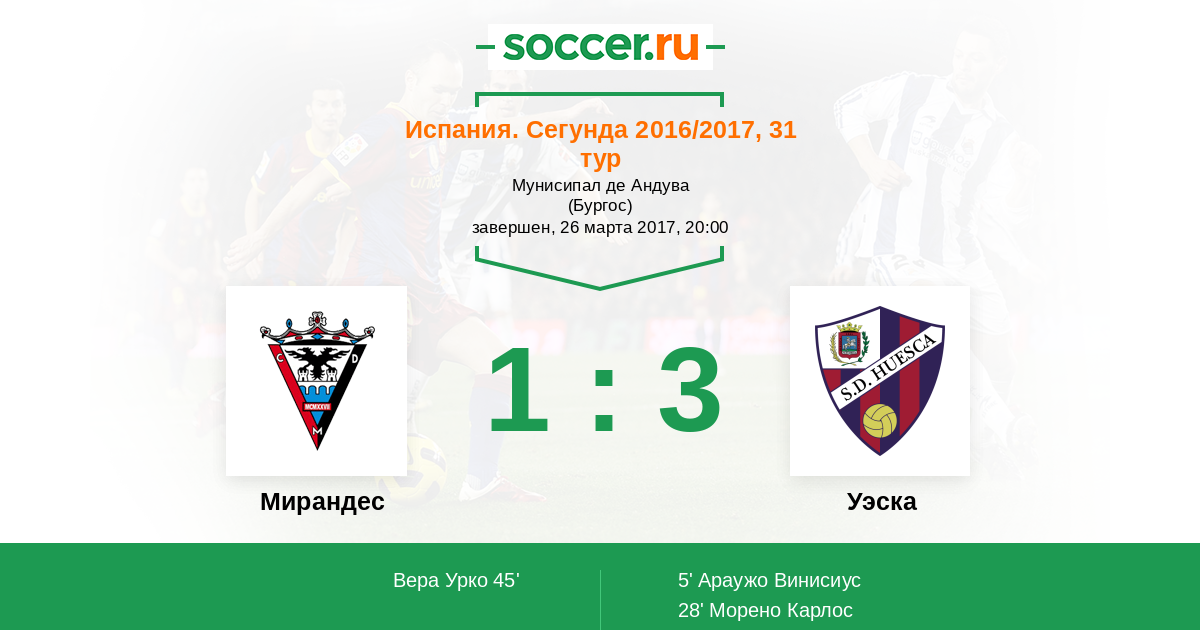 Мирандес - Уэска: обзор матча 26 марта 2017
