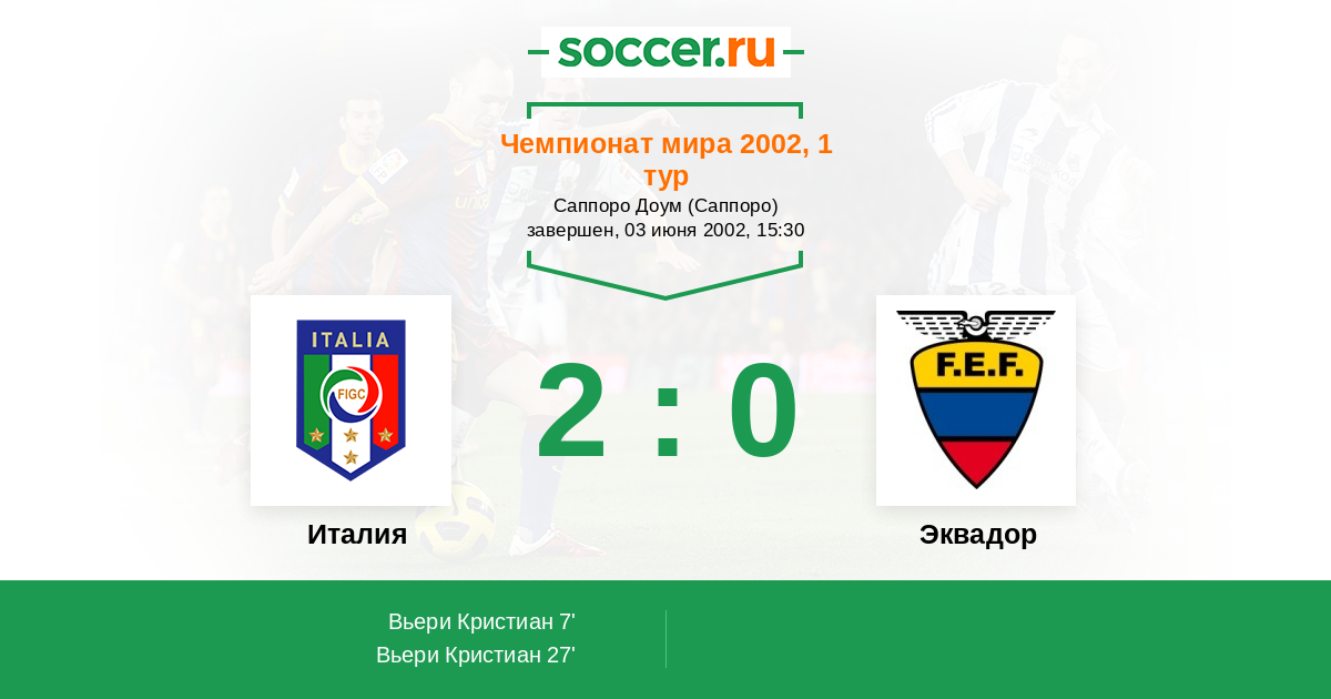 Италия - Эквадор: обзор матча 3 июня 2002