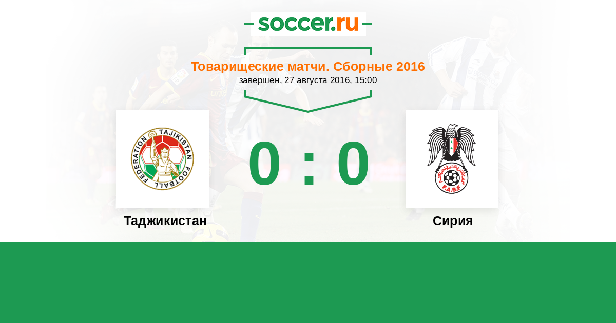 Таджикистан - Сирия: обзор матча 27 августа 2016