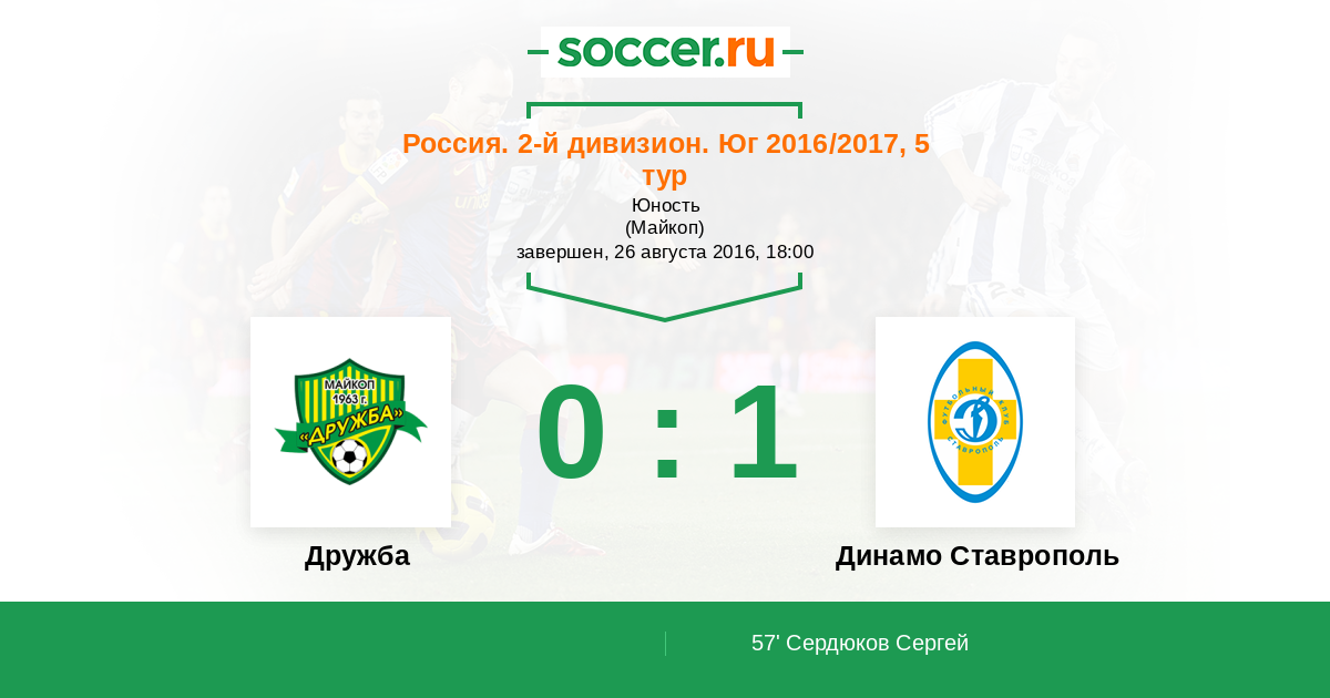 Дружба - Динамо Ставрополь: обзор матча 26 августа 2016