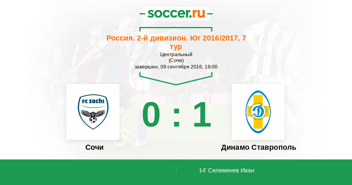 Сочи - Динамо Ставрополь: обзор матча 9 сентября 2016
