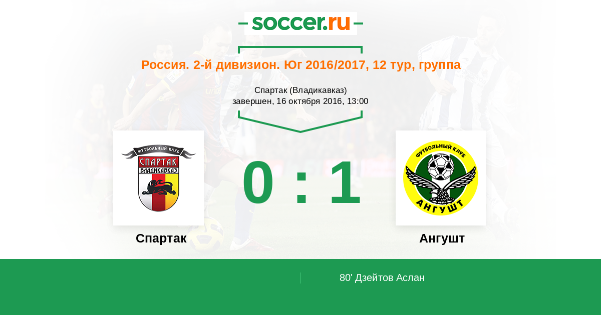 Спартак - Ангушт: обзор матча 16 октября 2016