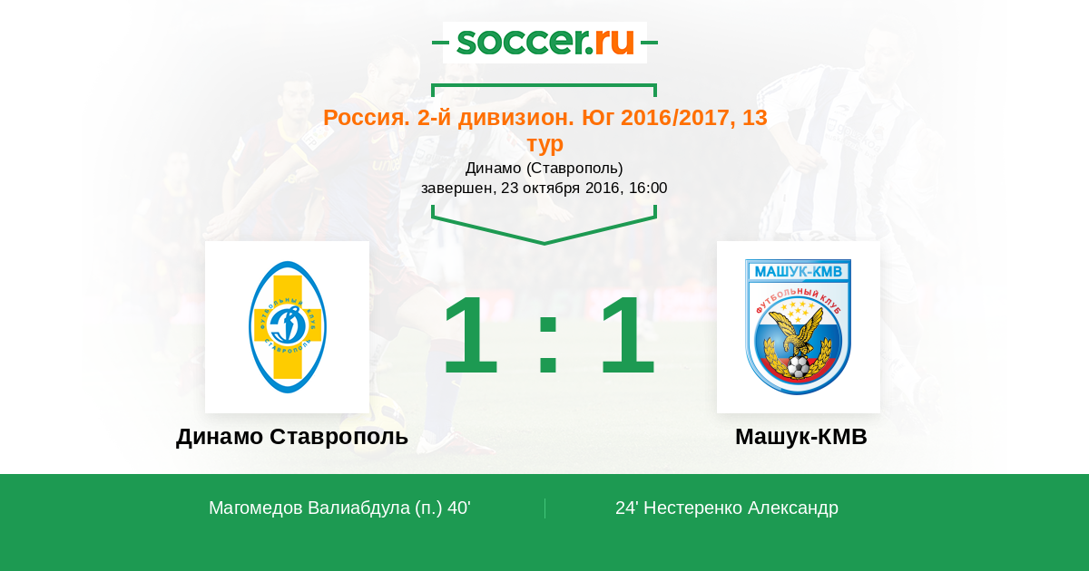 Динамо Ставрополь - Машук-КМВ: обзор матча 23 октября 2016