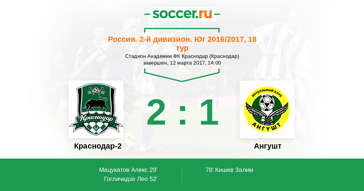 Краснодар-2 - Ангушт: обзор матча 12 марта 2017