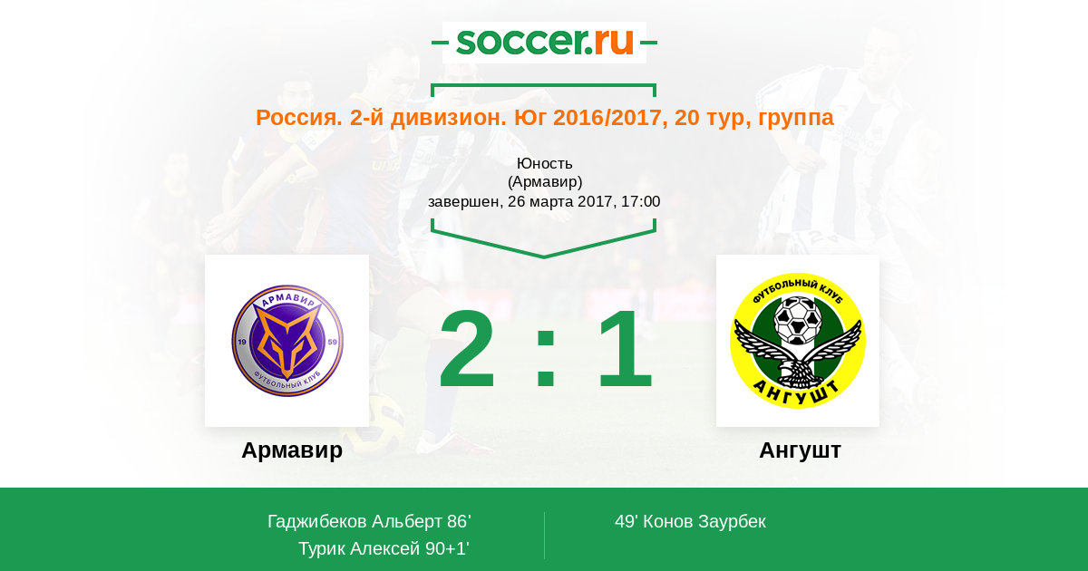 Армавир - Ангушт: обзор матча 26 марта 2017