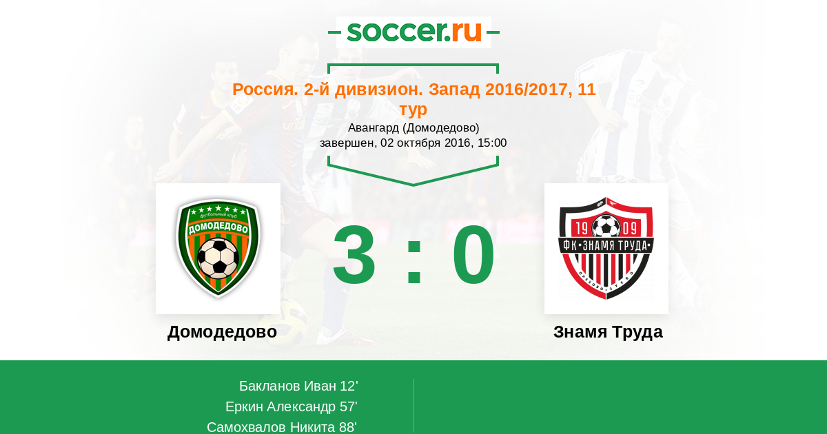 Домодедово - Знамя Труда: обзор матча 2 октября 2016