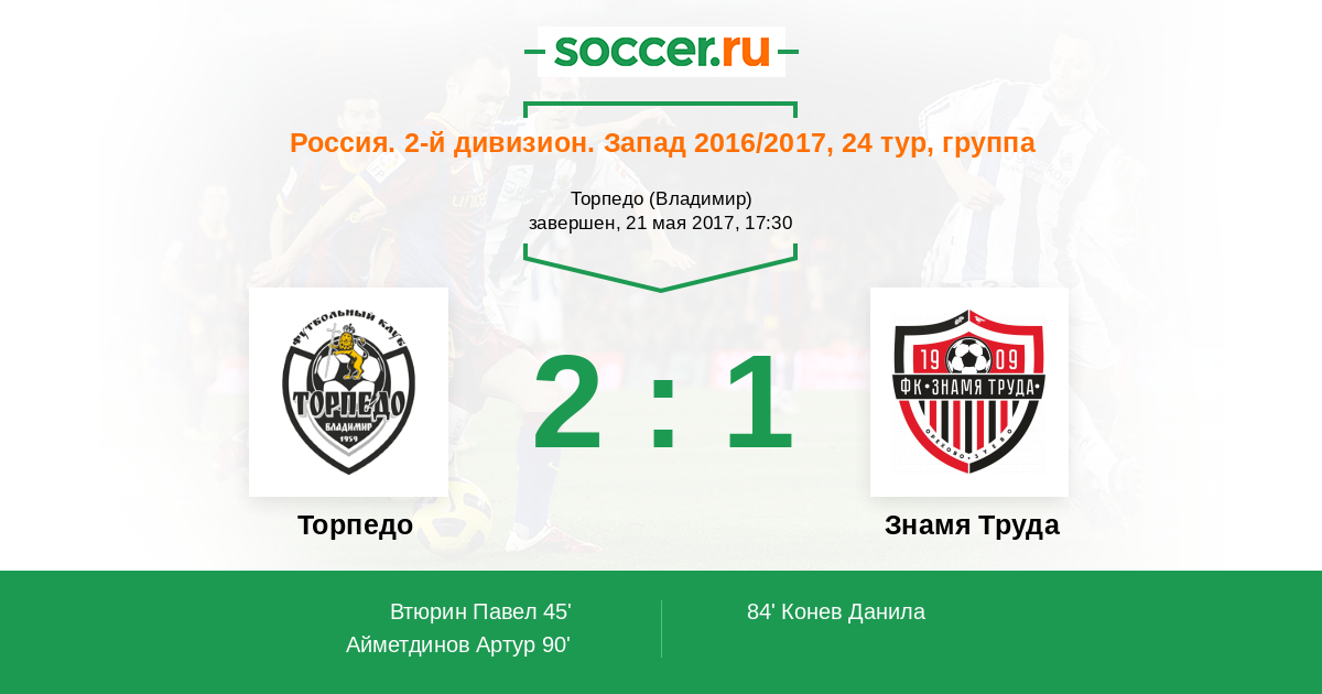 Торпедо - Знамя Труда: обзор матча 21 мая 2017