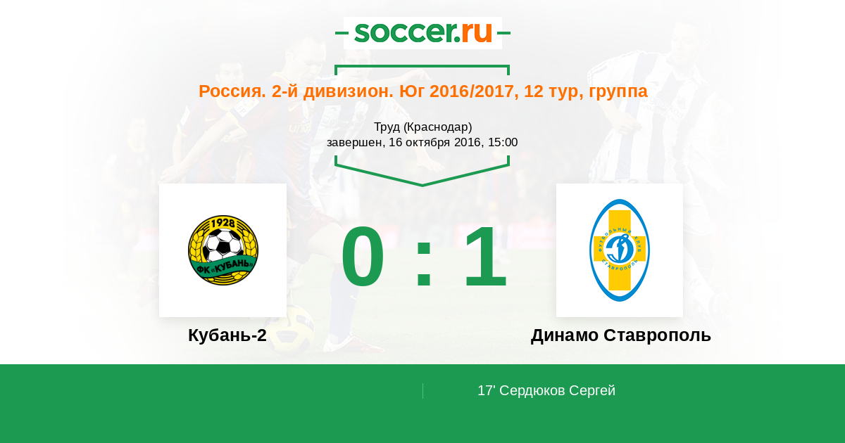 Кубань-2 - Динамо Ставрополь: обзор матча 16 октября 2016