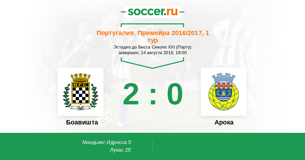 Боавишта - Арока: обзор матча 14 августа 2016