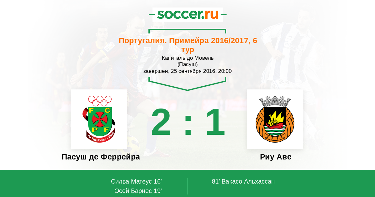 Пасуш де Феррейра - Риу Аве: обзор матча 25 сентября 2016
