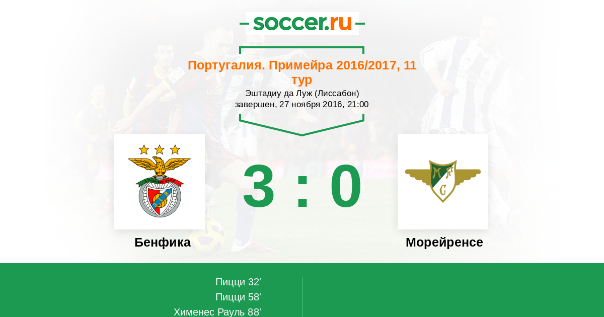 Бенфика - Морейренcе: обзор матча 27 ноября 2016