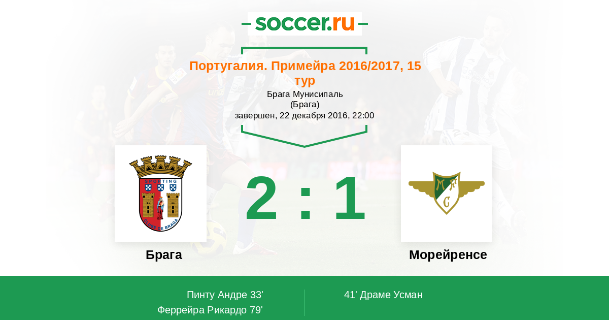 Брага - Морейренcе: обзор матча 22 декабря 2016