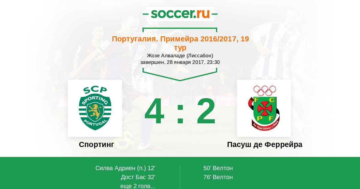 Спортинг - Пасуш де Феррейра: обзор матча 28 января 2017