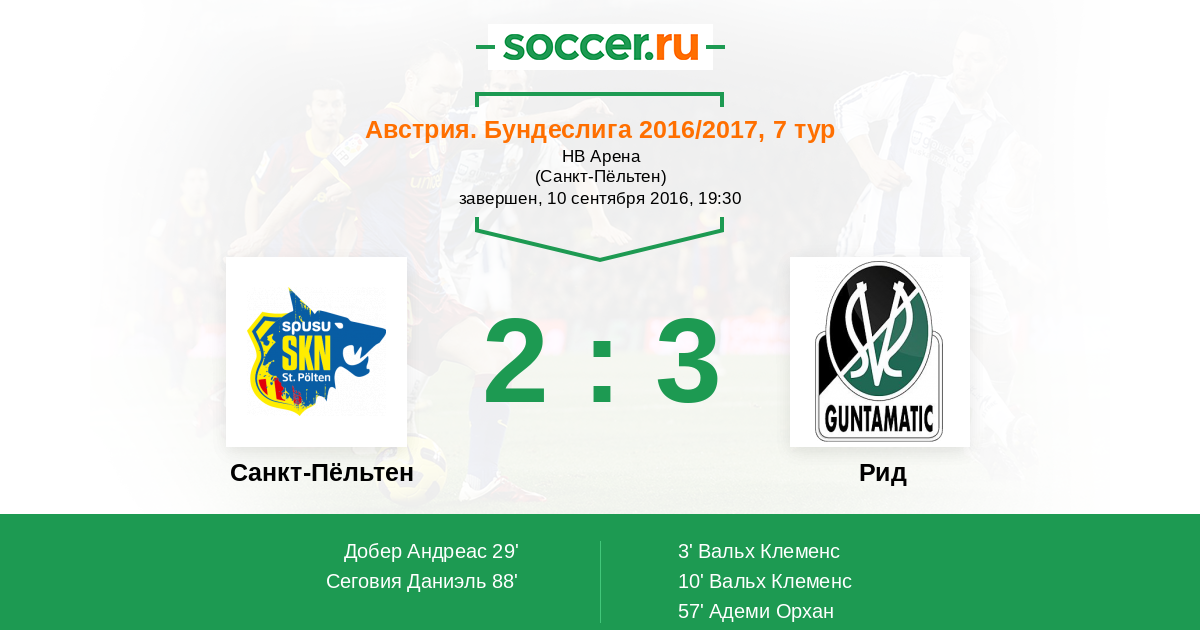 Санкт-Пёльтен - Рид: обзор матча 10 сентября 2016