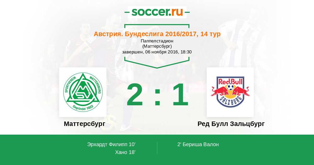Маттерсбург - Ред Булл Зальцбург: обзор матча 6 ноября 2016