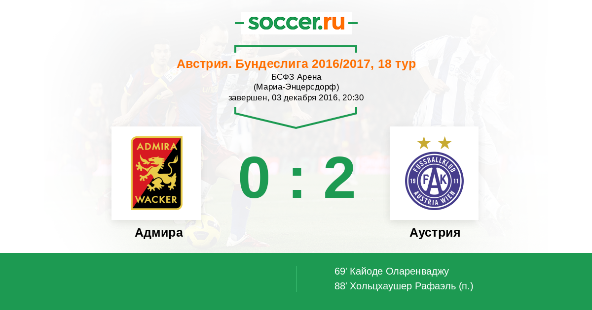 Адмира - Аустрия: обзор матча 3 декабря 2016