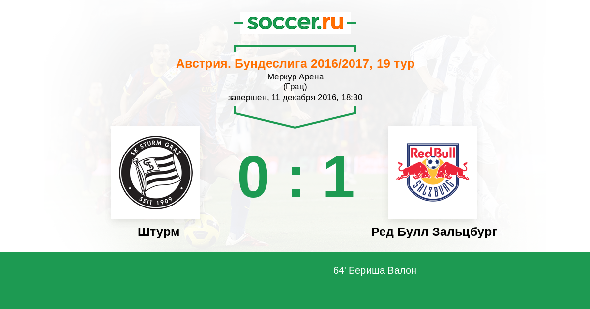 Штурм - Ред Булл Зальцбург: обзор матча 11 декабря 2016