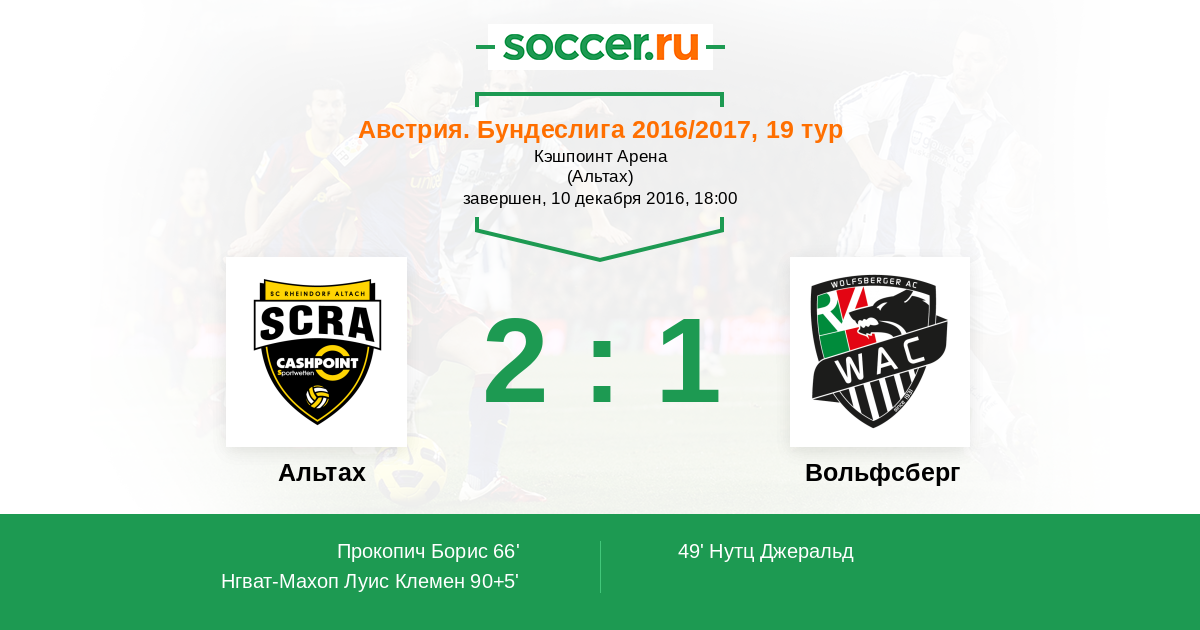 Альтах - Вольфсберг: обзор матча 10 декабря 2016