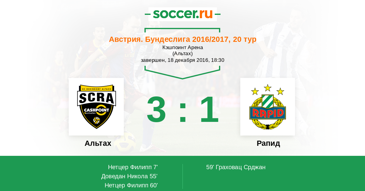 Альтах - Рапид: обзор матча 18 декабря 2016