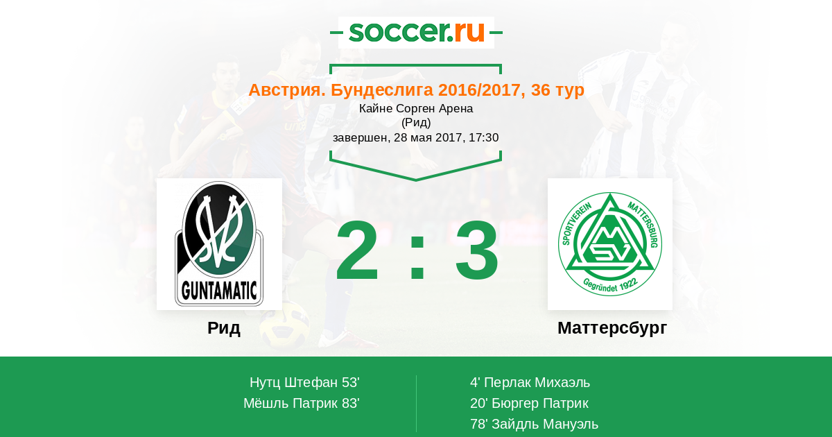 Рид - Маттерсбург: обзор матча 28 мая 2017