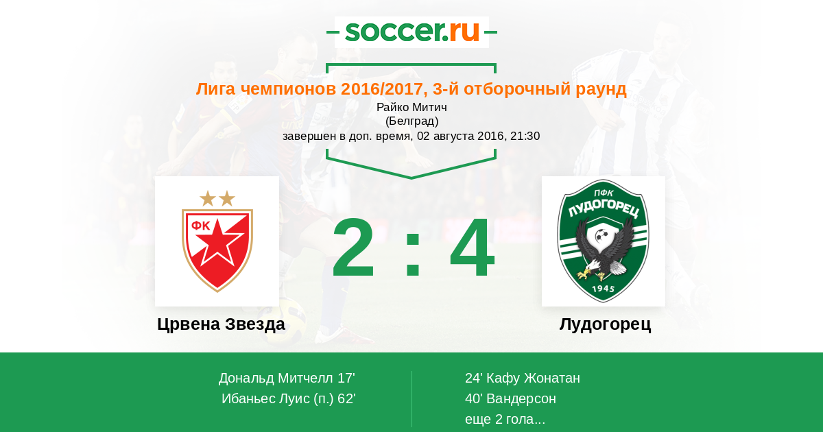 Црвена Звезда - Лудогорец: обзор матча 2 августа 2016