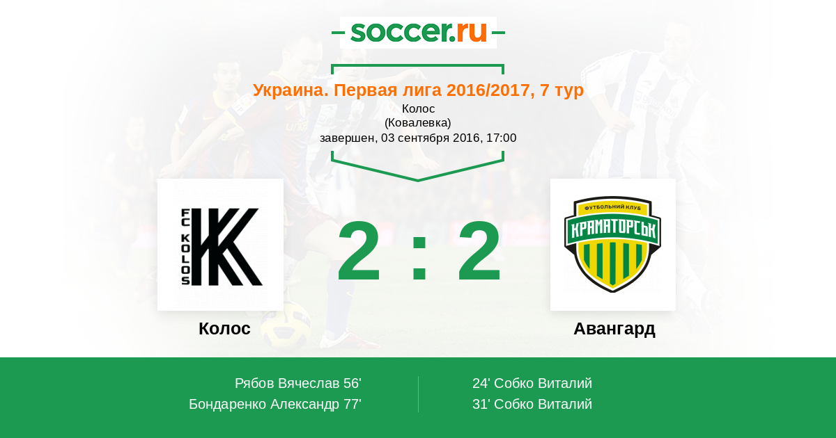 Колос - Авангард: обзор матча 3 сентября 2016