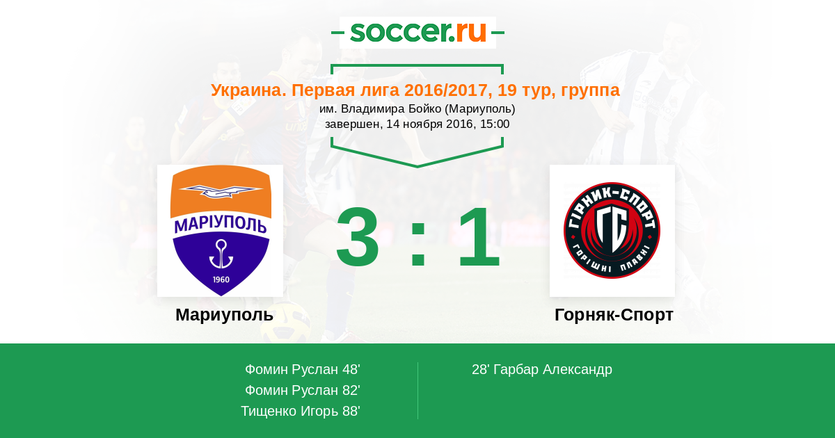 Ильичевец - Горняк-Спорт: обзор матча 14 ноября 2016