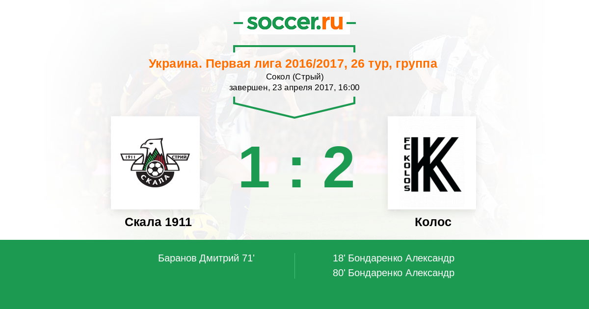 Скала 1911 - Колос: обзор матча 23 апреля 2017