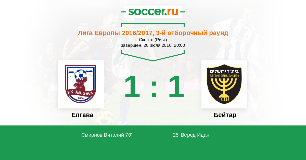 Елгава - Бейтар: обзор матча 28 июля 2016