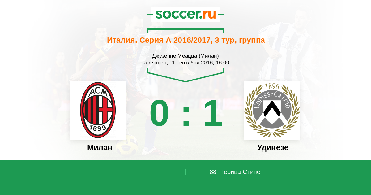 Милан - Удинезе: обзор матча 11 сентября 2016