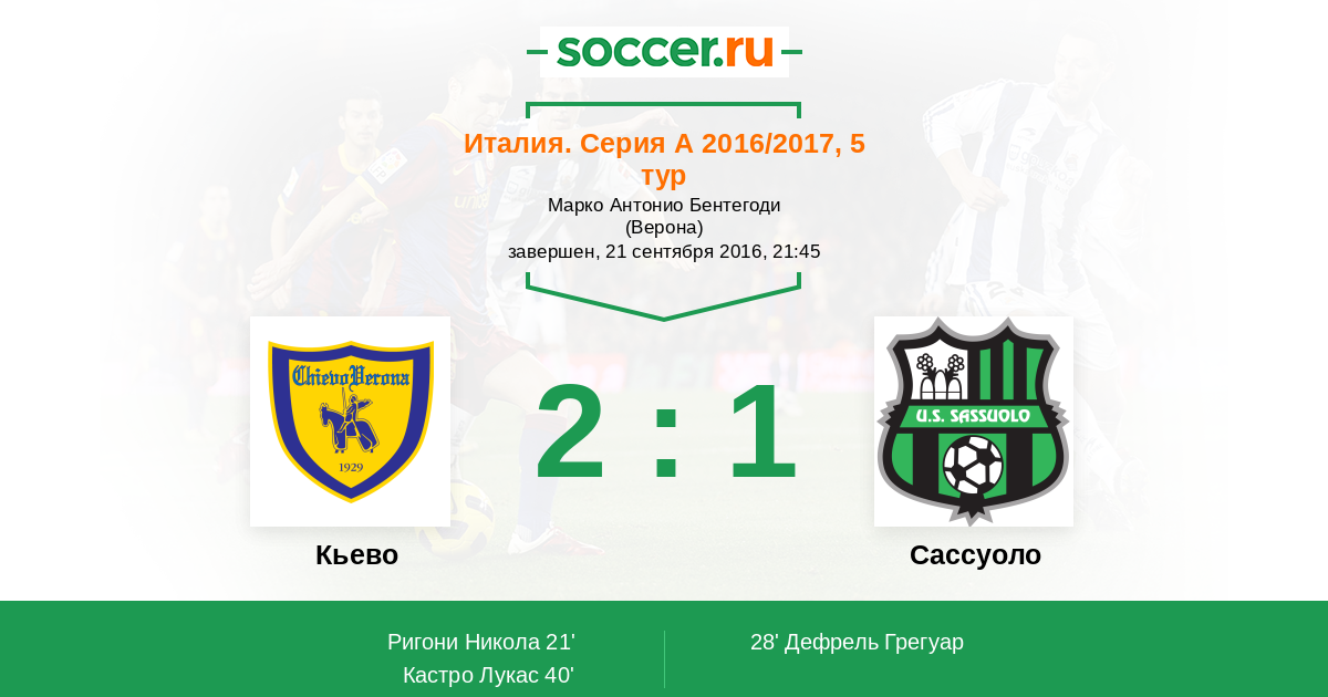 Кьево - Сассуоло: обзор матча 21 сентября 2016