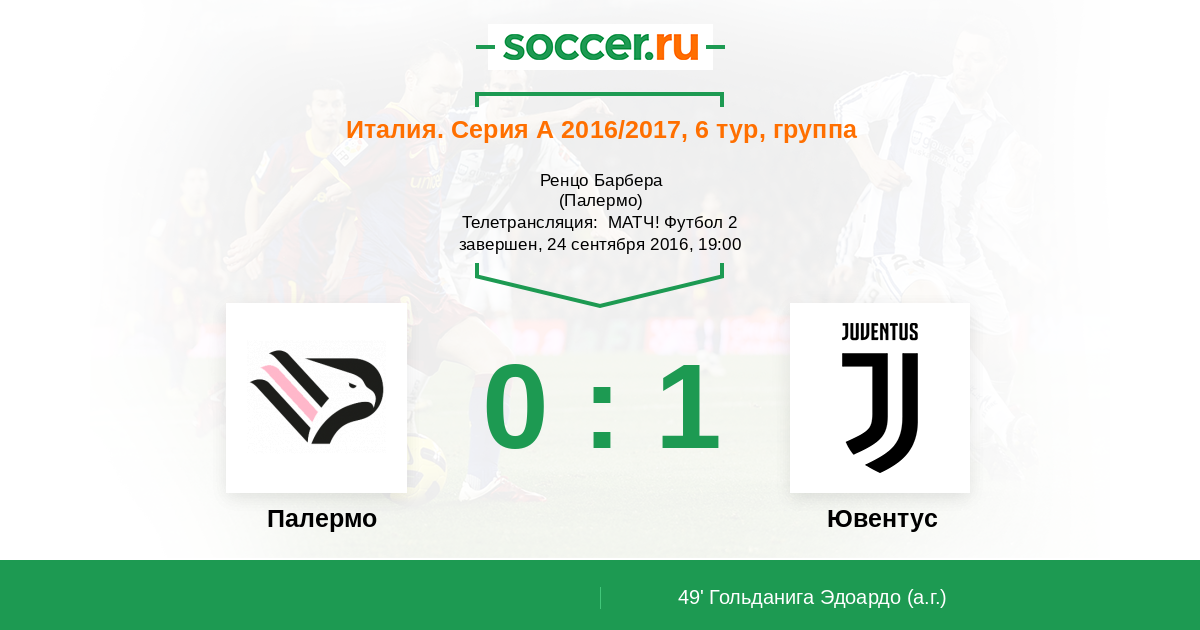 Приветствуем всех любителей футбола! Сегодня на Сицилии состоится один из самых интересных матчей этого тура, который ожидают все местные жители. В гости к «Палермо» пожалует лучшая команда итальянского чемпионата последних лет – туринский «Ювентус». Да, фаворит этой игры всем известен, но «Серия А» зачастую ломает все стереотипы, и кто знает, возможно, что сегодня именно такой случай. Следите за текстовой онлайн-трансляцией матча на «Соккер.Ру», которую для вас проведёт Глеб Васильев.