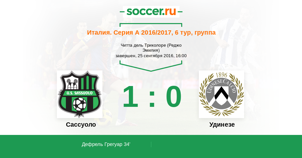 Сассуоло - Удинезе: обзор матча 25 сентября 2016