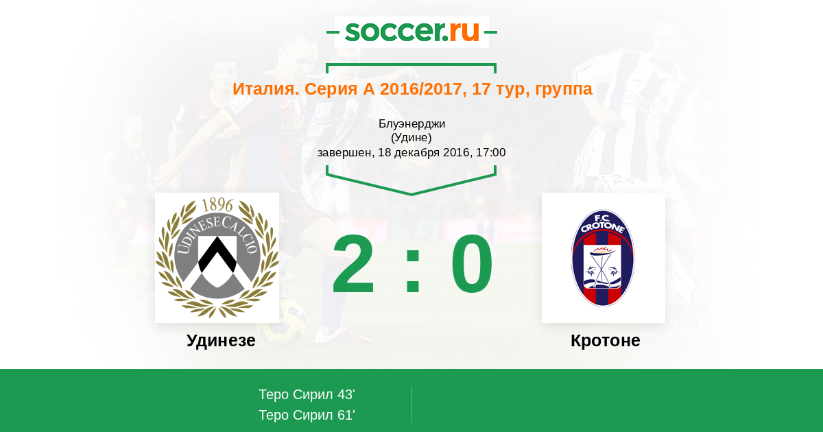 Удинезе - Кротоне: обзор матча 18 декабря 2016