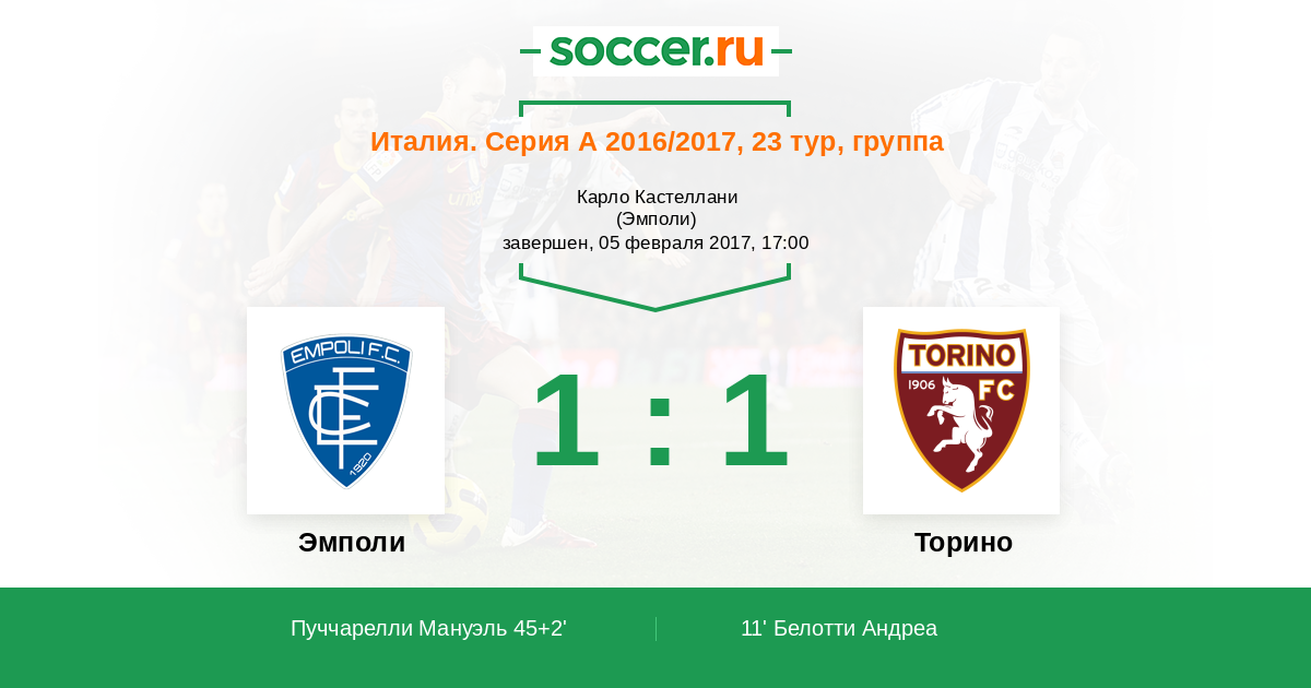 Эмполи - Торино: обзор матча 5 февраля 2017