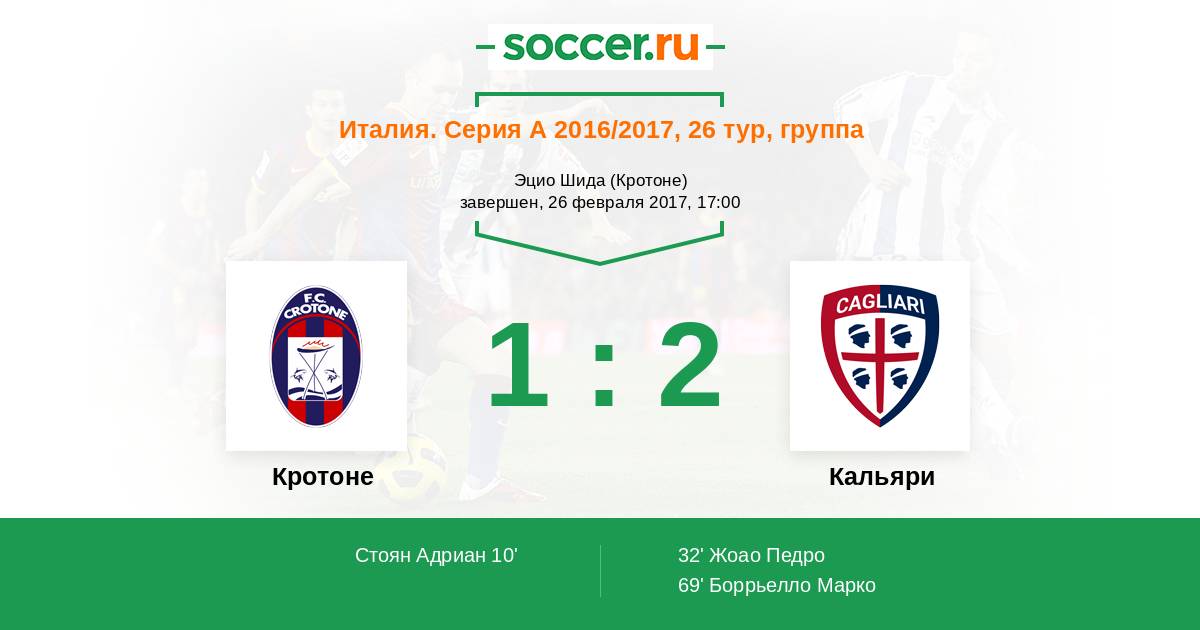 Кротоне - Кальяри: обзор матча 26 февраля 2017