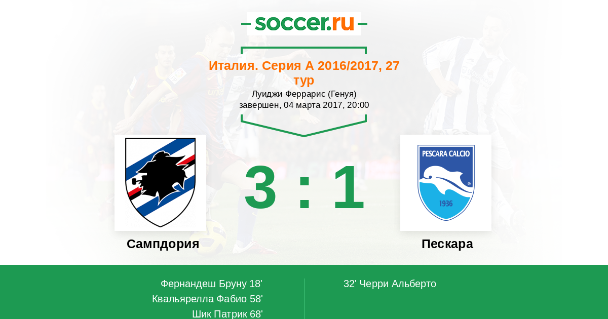 Сампдория - Пескара: обзор матча 4 марта 2017