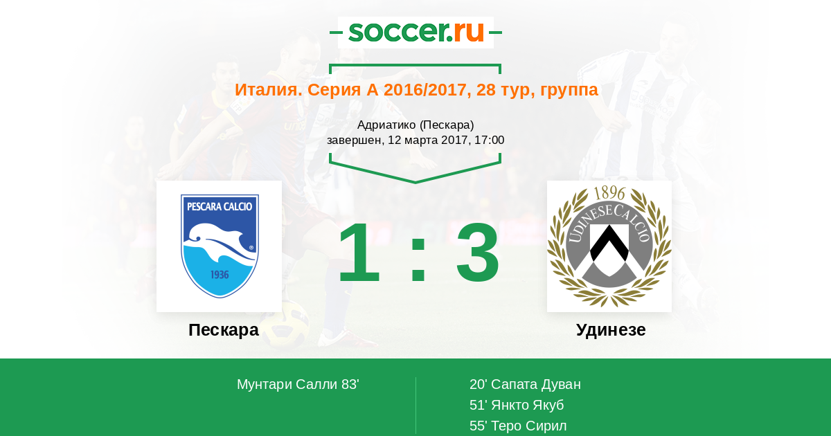 Пескара - Удинезе: обзор матча 12 марта 2017