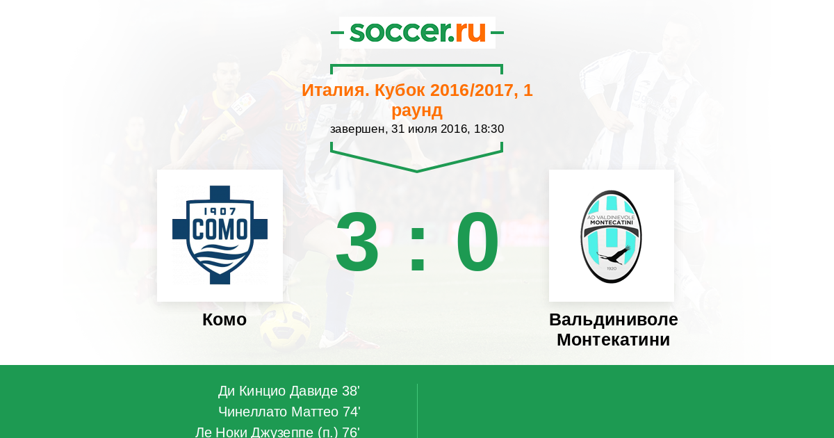 Комо - Вальдиниволе Монтекатини: обзор матча 31 июля 2016