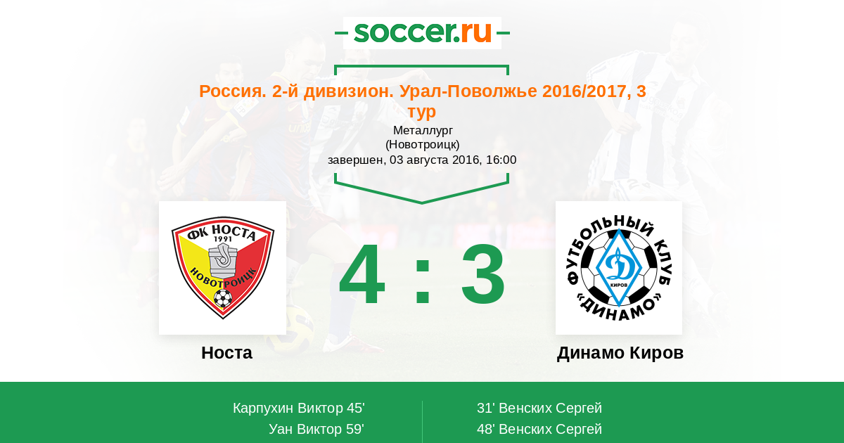 Носта - Динамо Киров: обзор матча 3 августа 2016
