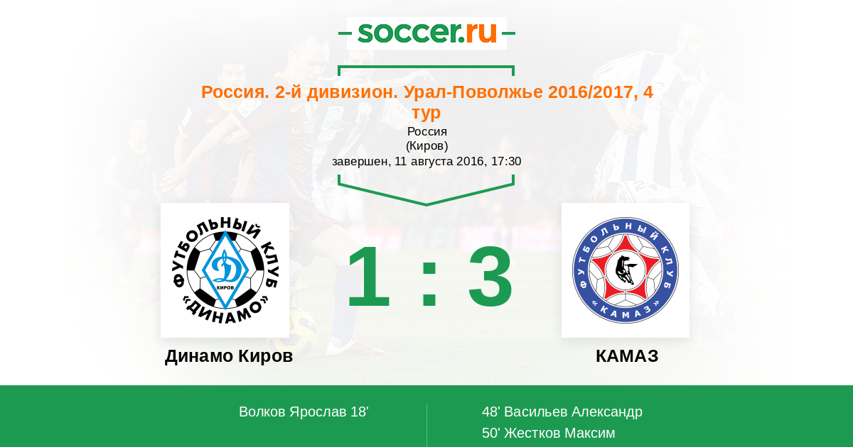 Динамо Киров - КАМАЗ: обзор матча 11 августа 2016