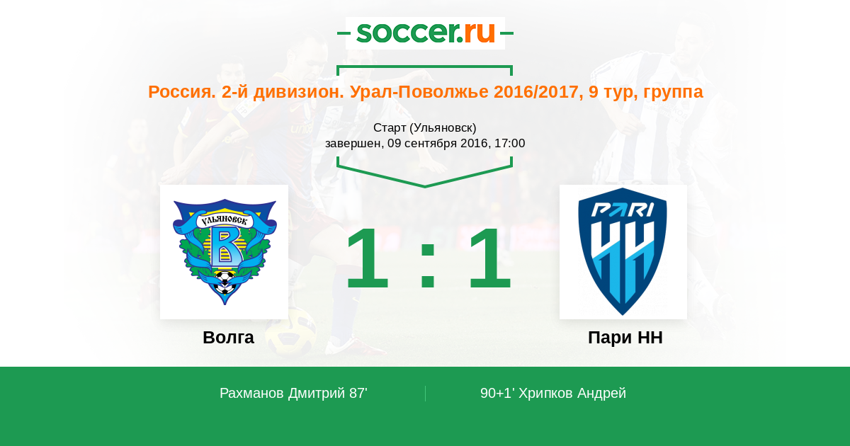 Волга - Пари НН: обзор матча 9 сентября 2016