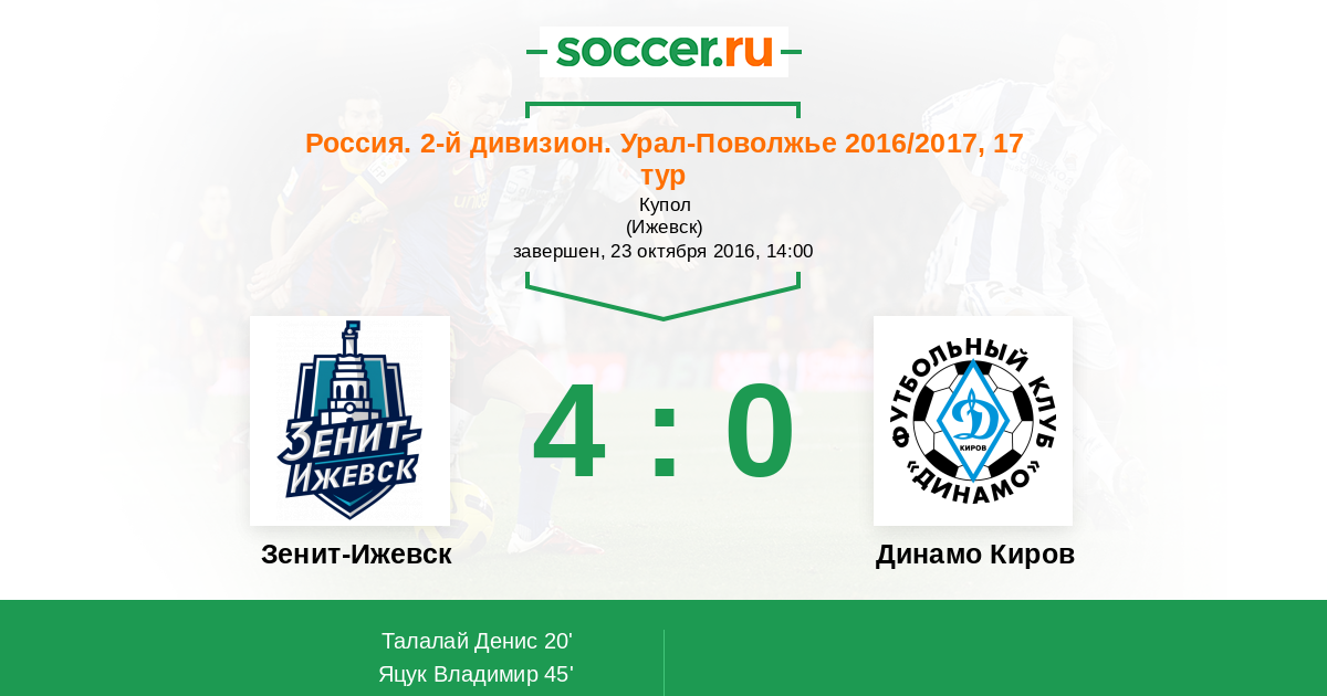 Зенит-Ижевск - Динамо Киров: обзор матча 23 октября 2016