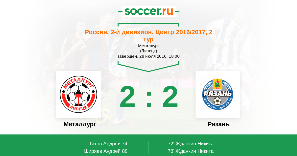 Металлург - Рязань: обзор матча 28 июля 2016
