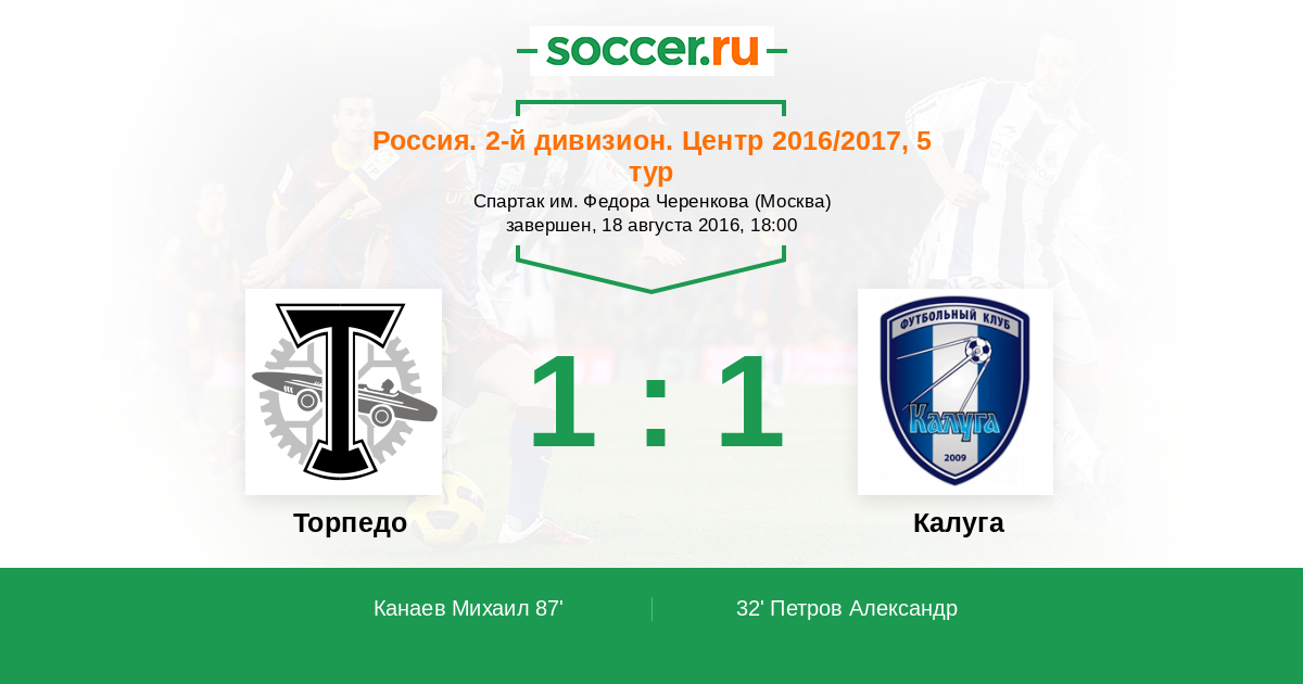 Торпедо - Калуга: обзор матча 18 августа 2016