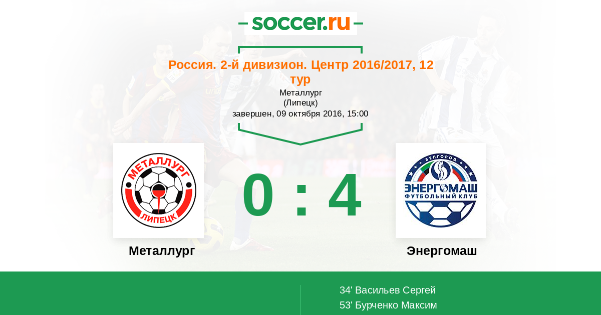 Металлург - Энергомаш: обзор матча 9 октября 2016