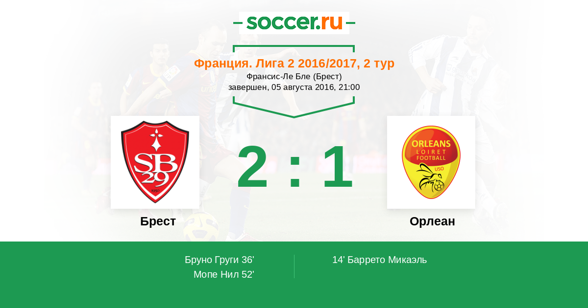 Брест - Орлеан: обзор матча 5 августа 2016