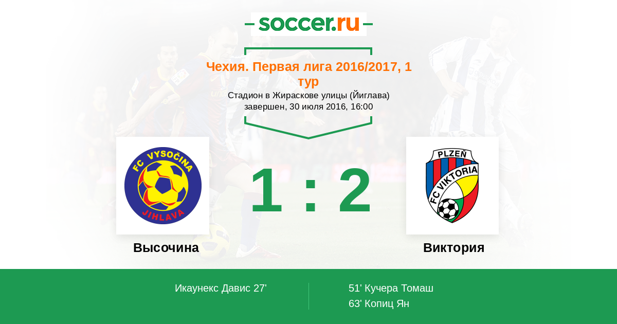 Высочина - Виктория: обзор матча 30 июля 2016