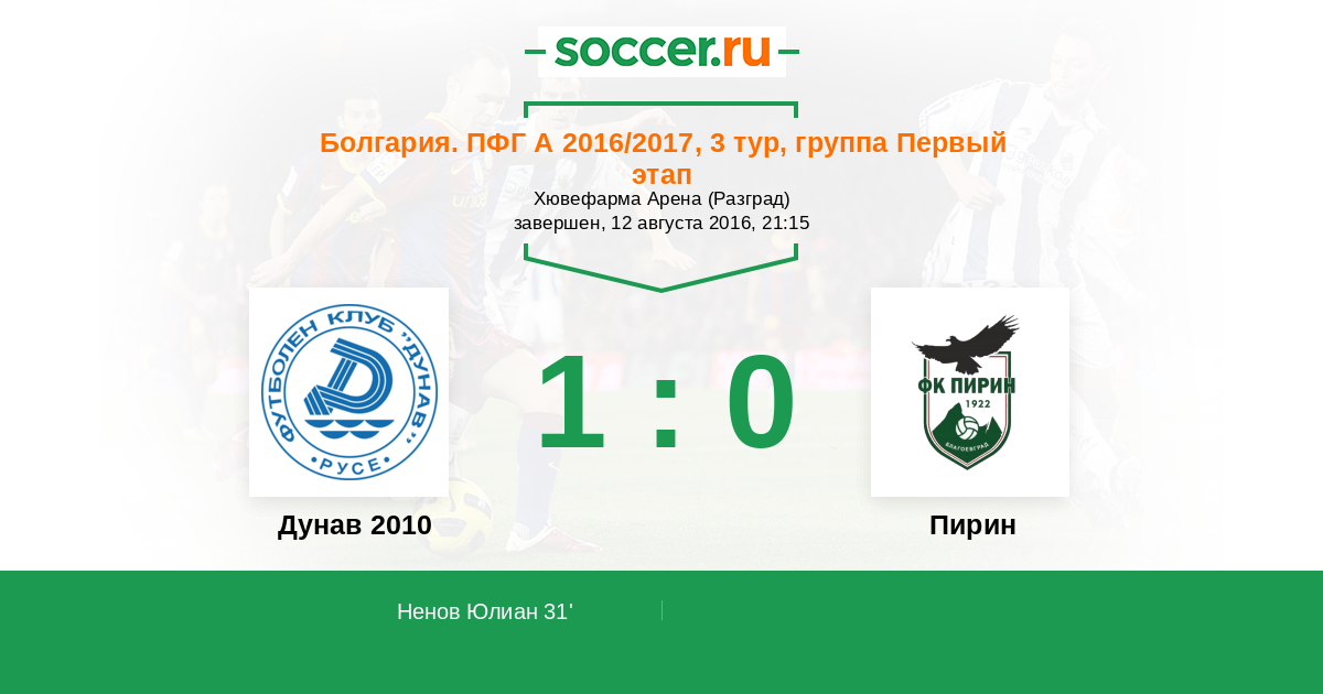 Дунав 2010 - Пирин: обзор матча 12 августа 2016